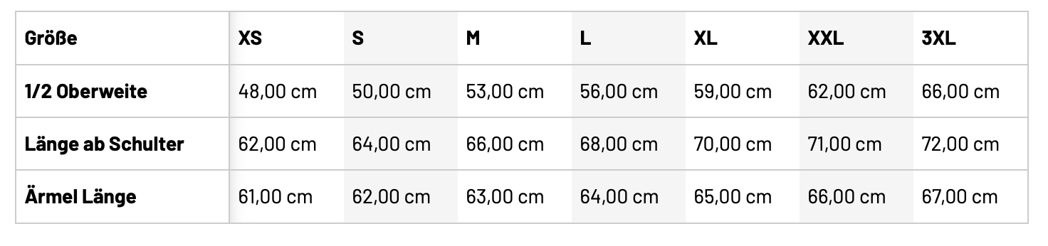 • Größentabelle