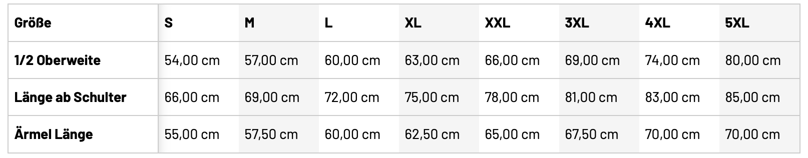 Größentabelle