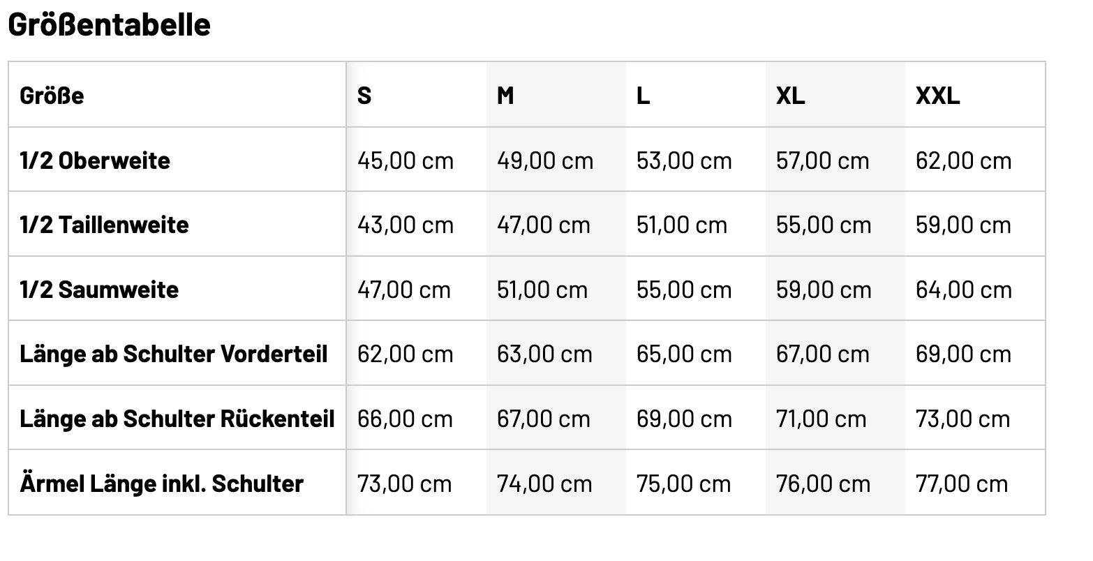 • Größentabelle