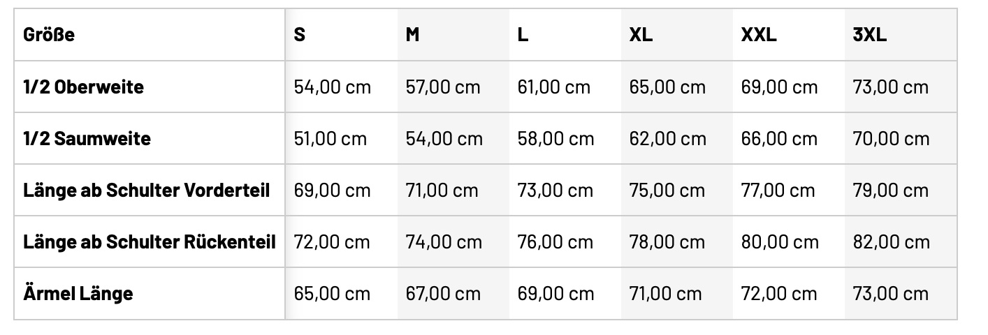• Größentabelle