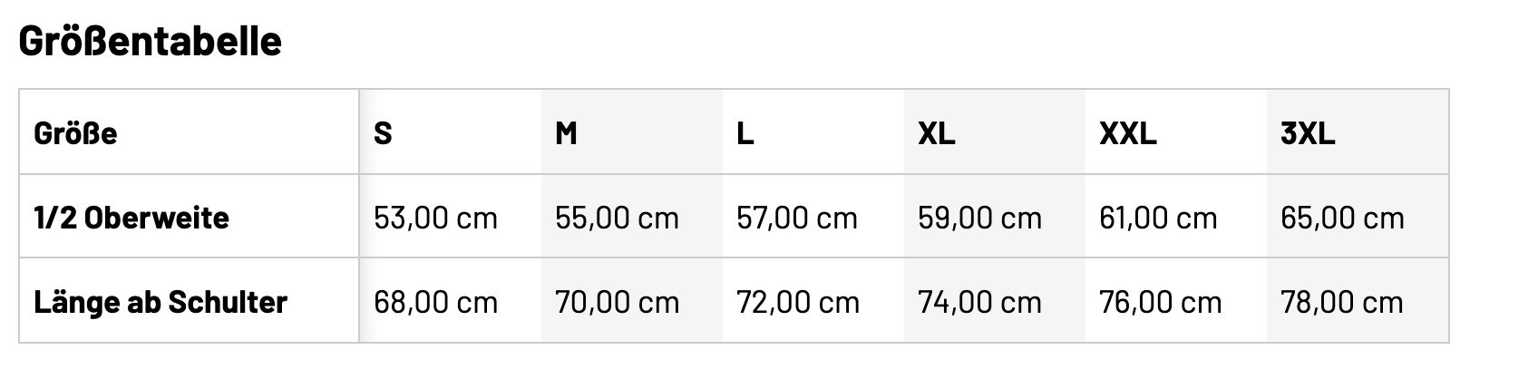 Größentabelle